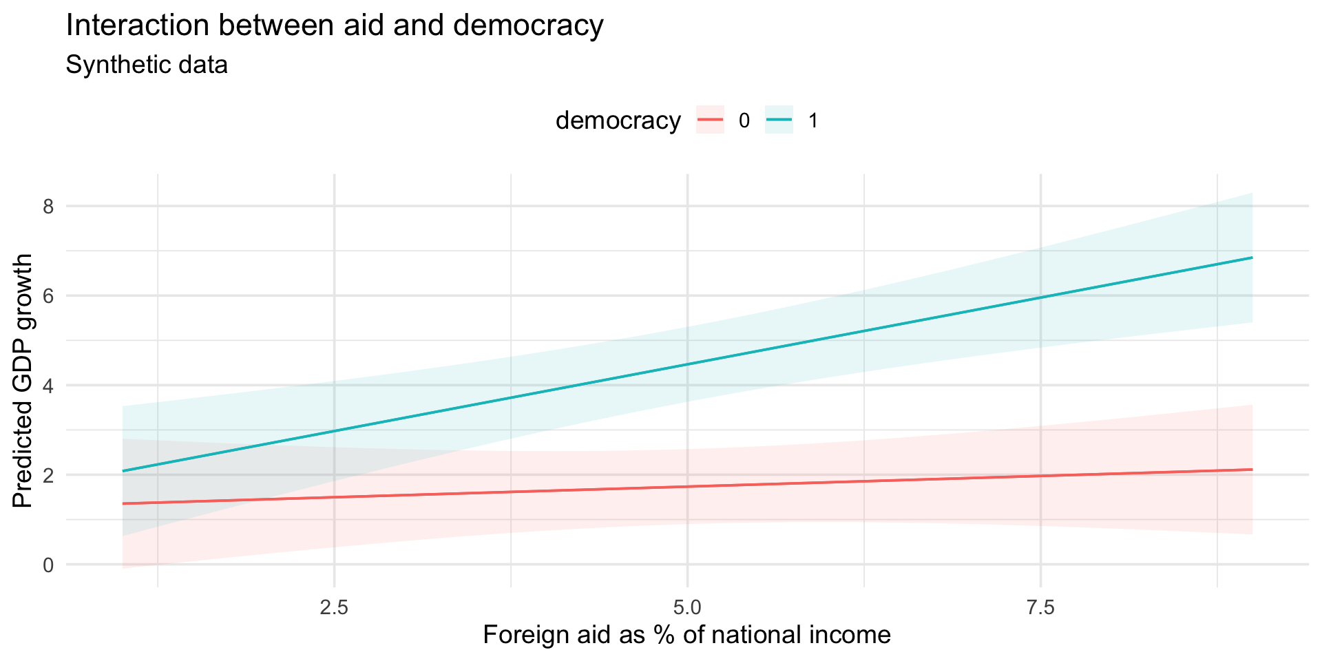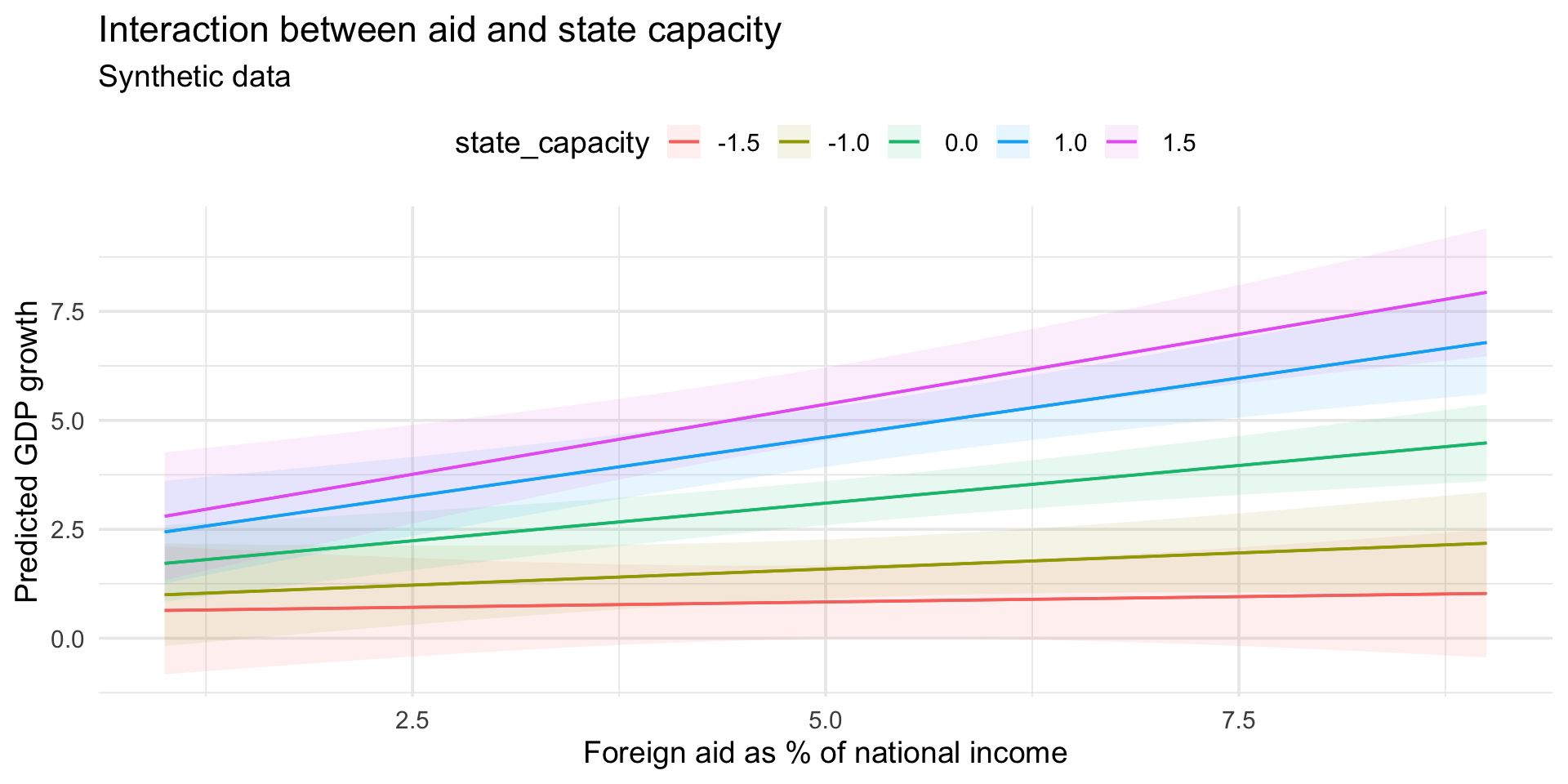 Suppose we want to study whether foreign aid is associated with economic growth (RQ). But we suspect that aid does not work the same way everywhere.
